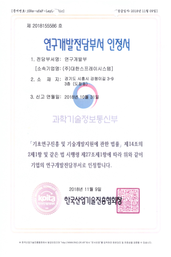 ㈜대한스프레이시스템은 항시 연구개발 하는 자세로